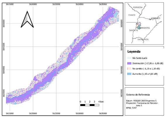 se generaron mapas de clases de cambio del coeficiente σ0 utilizando las imágenes